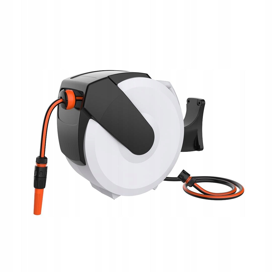 Zwijacz bębnowy MOTIVE – automatyczny mechanizm, 20 m węża 1/2", montaż ścienny, obrót, wygodne podlewanie bez plątaniny i schylania.